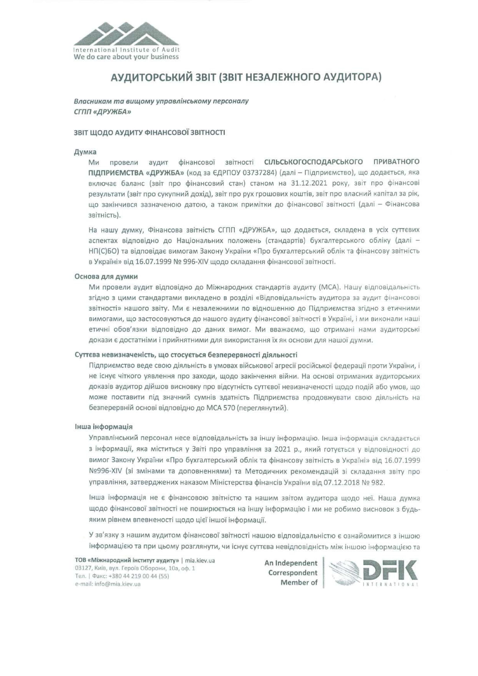 Аудиторський висновок за 2021 рік