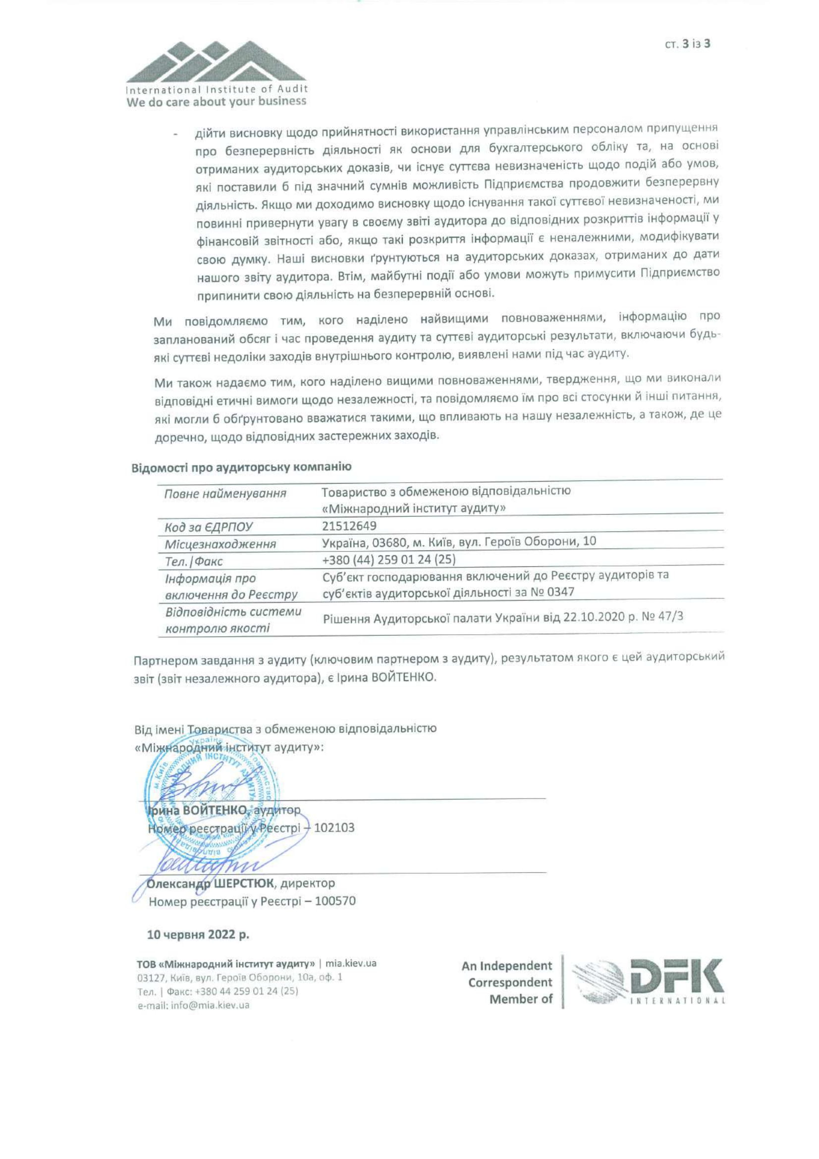 Аудиторський висновок за 2021 рік
